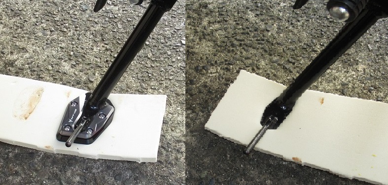 左側がプレートを付けた後で右側が付ける前です。接地面積が大違い。