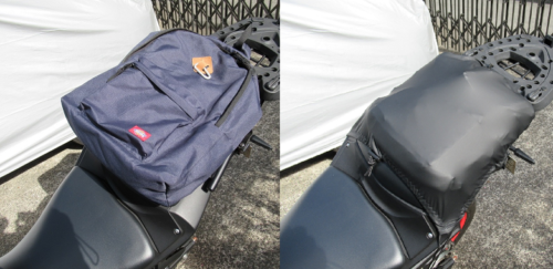 リアシートにリュックを載せて被せてみると伸びるのでぴったり覆ってくれます。