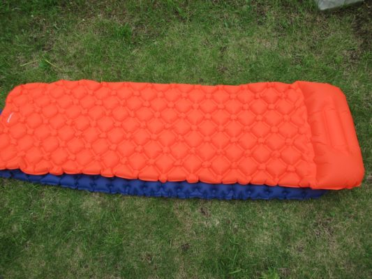 エアーマットはいつも2枚重ねです。1枚だと腰の部分が凹んで地面の冷たさが伝わってきます。