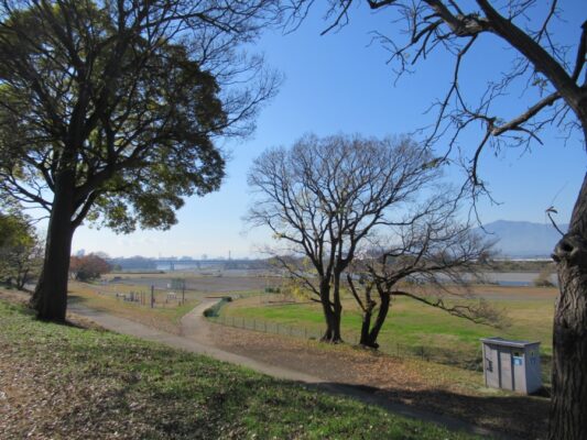 広い河川敷にある相模三川公園は自然が一杯。相模川越しに見える丹沢の山々の眺望も良い場所です。
