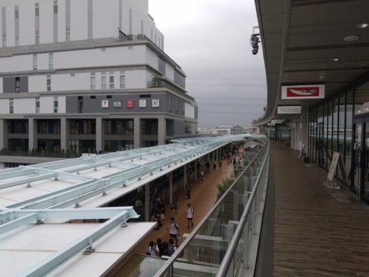 中央に広い公園があるオープンエアーのモールです。オープンと言ってもこちらも駅から屋根付きのペデストリアンデッキがあって雨に濡れません。