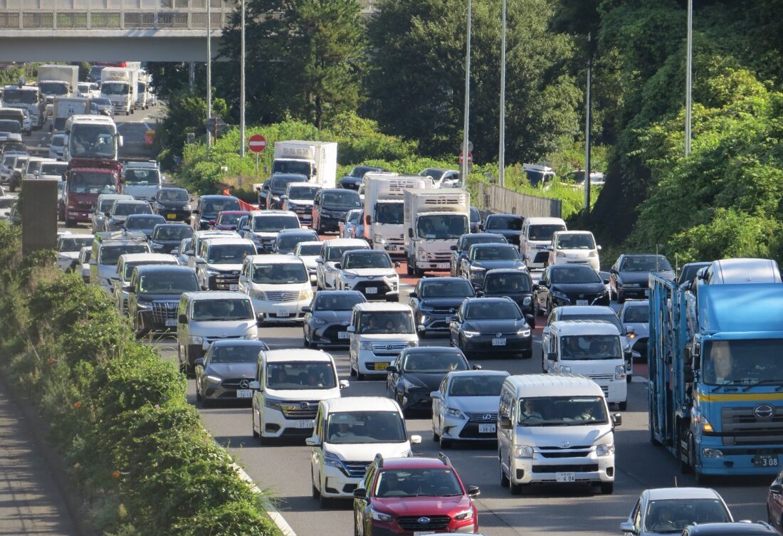 連休や週末の午前の東名高速の下りです。こんな渋滞が厚木ICまで続きます。