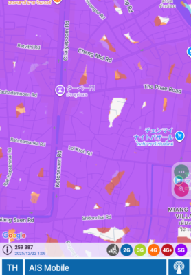 タイ全土のモバイル回線です。表示回線のキャリアはAIS。(キャリアを変えて表示できます)