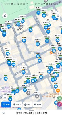 同じ場所でWi-Fiスポットを検索。スポットはびっしり詰まってます。