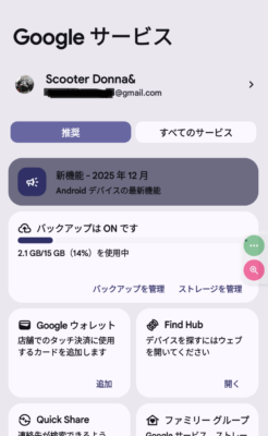 Android端末ならスマホから「設定」でGoogleアカウントにバックアップできます。