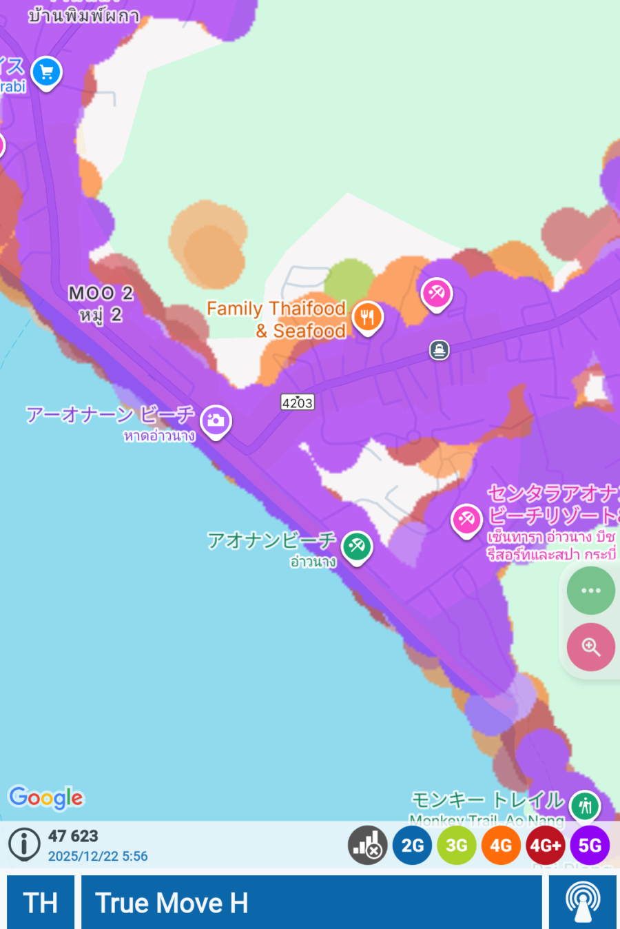 タイ全土のモバイル回線です。表示回線のキャリアはAIS。(キャリアを変えて表示できます)