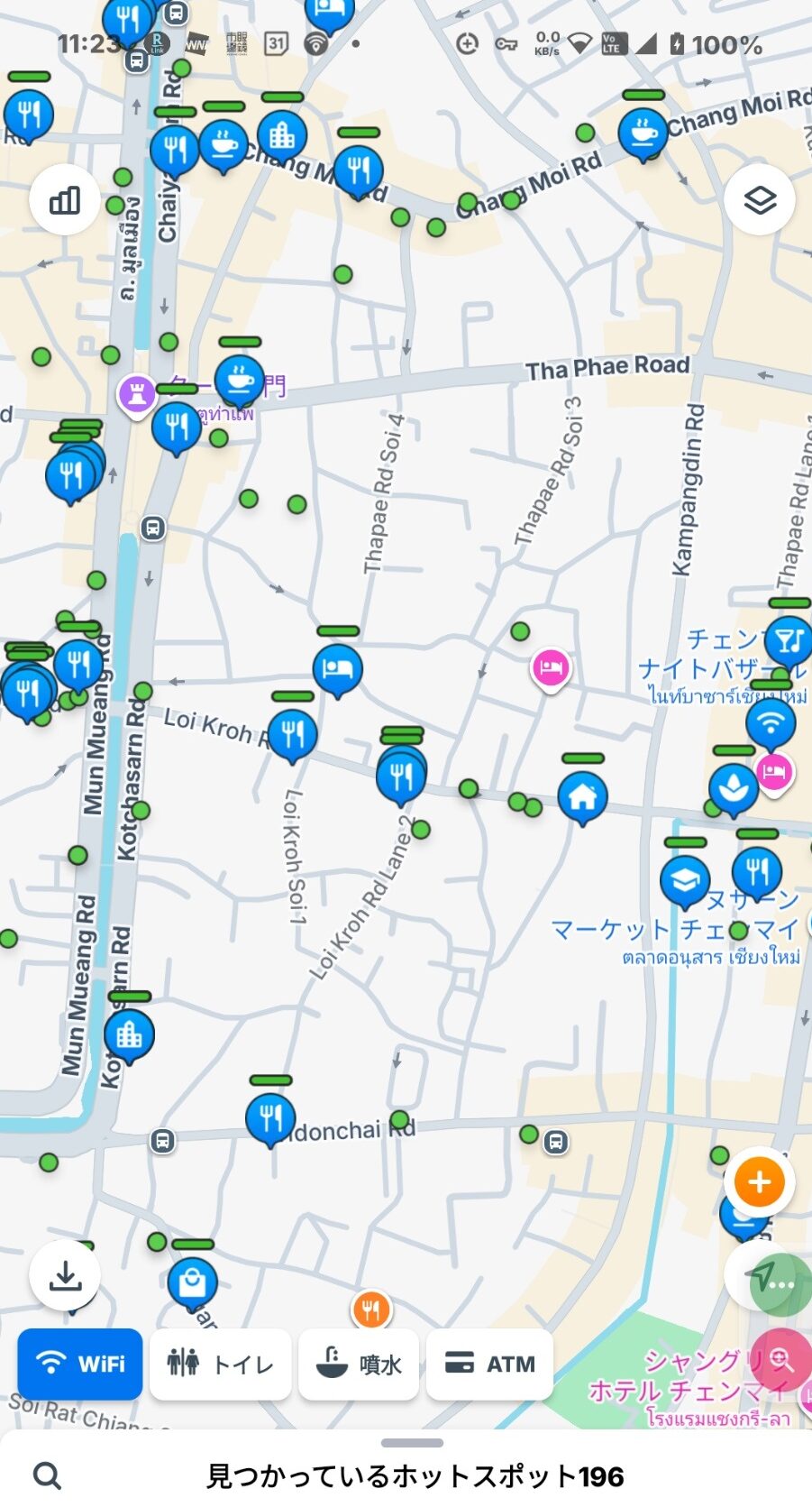 同じ場所でWi-Fiスポットを検索。スポットはびっしり詰まってます。