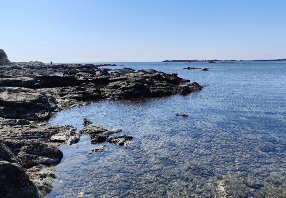 待ち時間が1時間くらいあっても磯歩きを楽しんでいるとすぐに順番が来ます。駐車場の奥に階段があって広い磯に降りることができます。