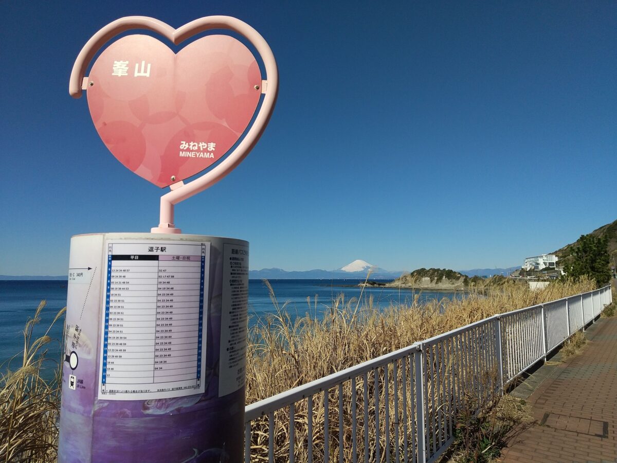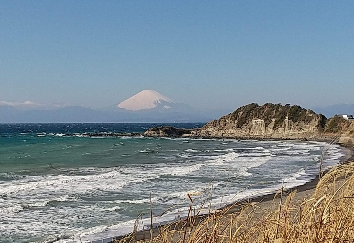 富士山方面に景色を遮る雲がない時は海岸線沿いの国道134号線を南下です。相模湾越しに冠雪の富士山が見えるポイントがいくつもあります。