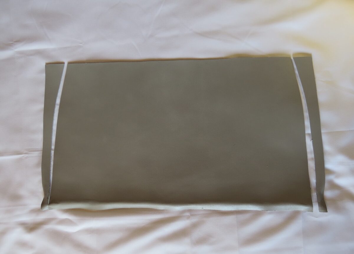 ファスナー革の幅を狭くすると本体上部の幅が狭くなるので本体の革も裁断です。