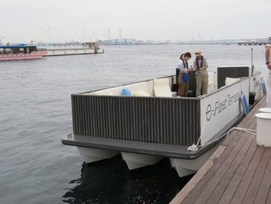 e-Float Terraceという電動推進機を搭載した横浜クルーズ仕様の電動ボートに乗船できます。(他のイベントを含めて要予約)